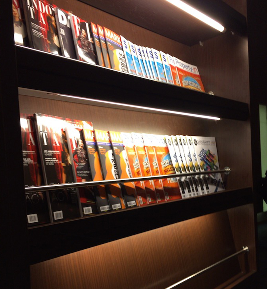 雑誌類は全て英語の雑誌のようです。時間によっては、この棚に新聞も置いてあります。