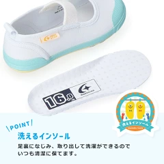 イフミーの上履きは、取り替え式のインソールが追加で1組ついてきます。上履きは毎日はいて汚れるものですし、子供の足の汗をよく吸います。その際に、取り替え式インソールがあると清潔に保てます。